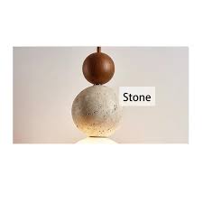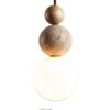 - Design: The fixture features a minimalist, modern, or Wabi-sabi style, characterized by stacked spheres of different materials: typically wood, natural travertine, and a frosted or opal glass globe for diffusion.