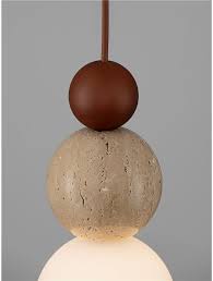 This light is a modern pendant lamp that typically combines natural materials like travertine stone and wood into a sculptural, stacked-sphere design. These lights are often referred to as “Travertine Pendant Lights” or “Trio Orb Pendant Lamps”.