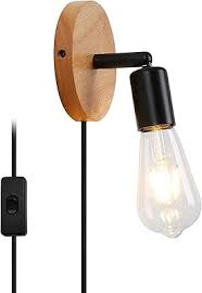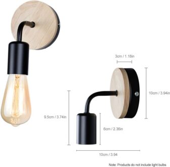 This item is a vintage industrial-style wall light sconce featuring a black metal E27 lamp holder and a round wooden base. These lights are widely available online and designed for indoor use in areas such as bedrooms, living rooms, hallways, and cafes.